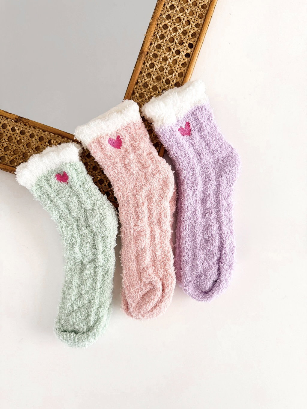 Disponibles en colores delicados como rosa, lila y verde, estas medias cuentan con un encantador detalle bordado de corazón que suma un toque de ternura y estilo.